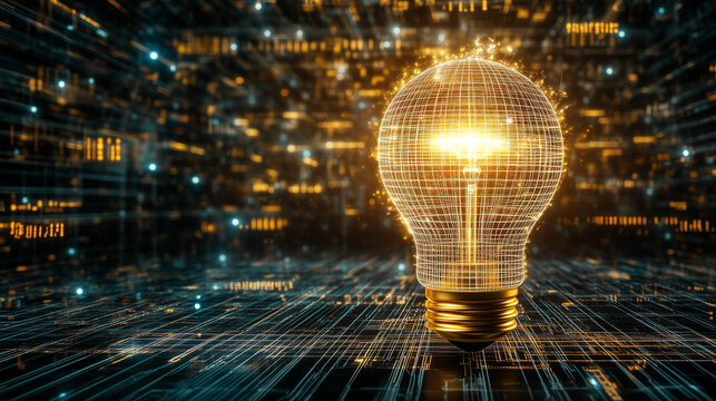 Digital neural network connecting icons for learning, ideas, and programming, representing knowledge and innovation.