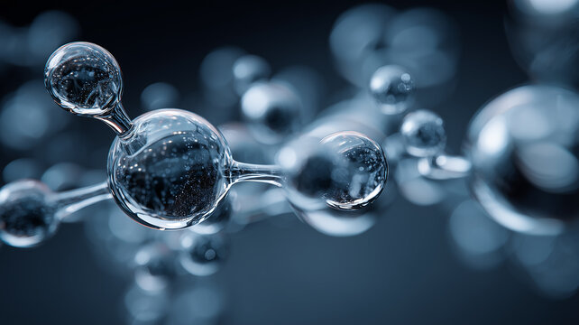 3D macro shot of molecule structure; spheres connected by rods, bokeh effect