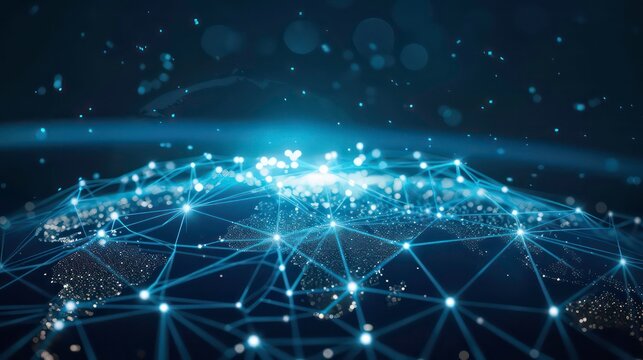 abstract lines with dots over dark background. connecting or big data concept. Generative AI.