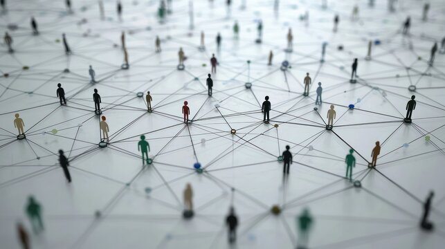 A 3D visualization an online social network, with connecting lines and dots symbolizing global communication and data exchange.