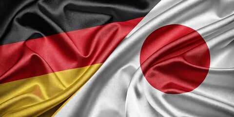 Waving German and Japanese Flags Symbolizing International Friendship and Unity