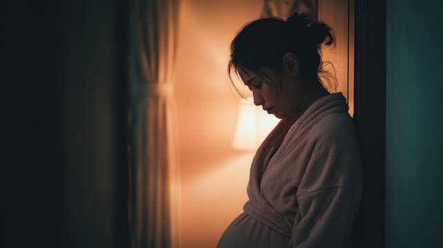 Solo pregnant Asian woman feeling depressed at home Starting a family