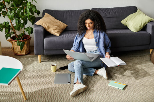 Beautiful young woman dedicating time to freelance work in a cozy modern apartment
