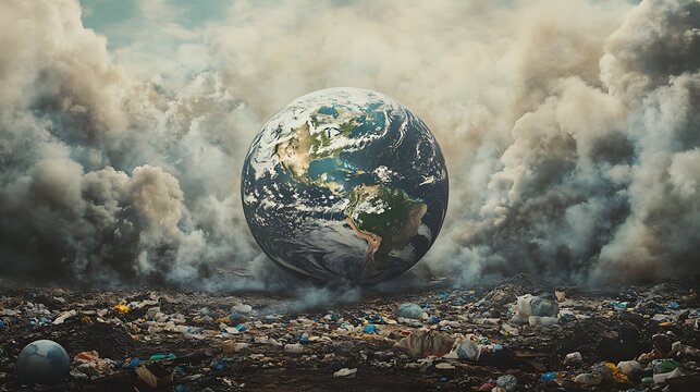 Globe surrounded by pollution and smoke in a dirty environment condition