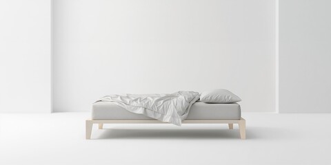 Studio shot of a single bed with a cotton duvet cover used as a background for layout design, editorial header background