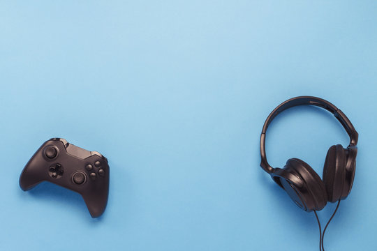 Black and white joystick xbox one s gamepad, game console on yellow colourful trendy modern fashion pin-up background. Computer gaming competition videogame control confrontation concept
