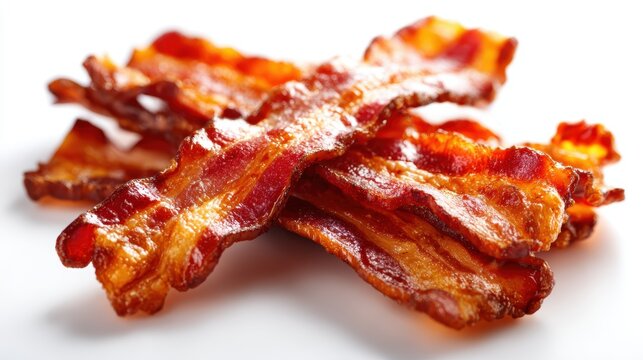 A tempting stack of crispy bacon strips offers a mouthwatering appeal, perfect for breakfast or snacks, showcasing indulgence and satisfying flavors.