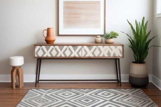 Wood Console Cabinet Contemporary Modern Foyer Living Room Blank Empty Wall Copy Space