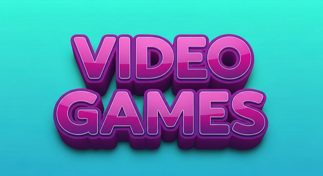 Video games 3d text purple retro typography