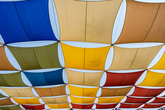 Colorful canvas fabric roof and steel structure, multicolor fabric tensile roof.