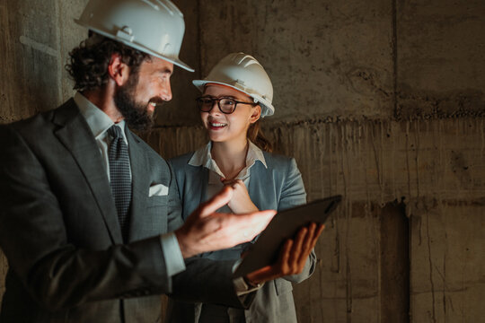 Construction Professionals Analyzing Digital Progress With Technology Images