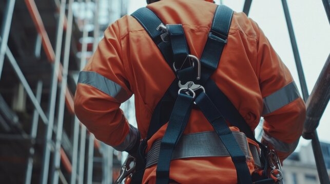Two scaffolders working on a building site, wearing orange hi-vis protection clothes. Concept for construction workers, teamwork, work, infrastructure, building site, manual skills, lockdown.