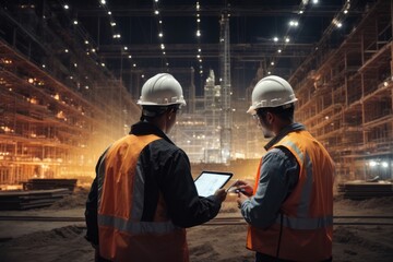Engineer and Architect analyze projects with new technology and innovative on digital and virtual tablet