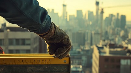 Construction Worker Using Level Tool At Building Site For Precision Work Images