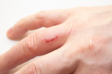 Hand dermatitis. Hand eczema closed on white background