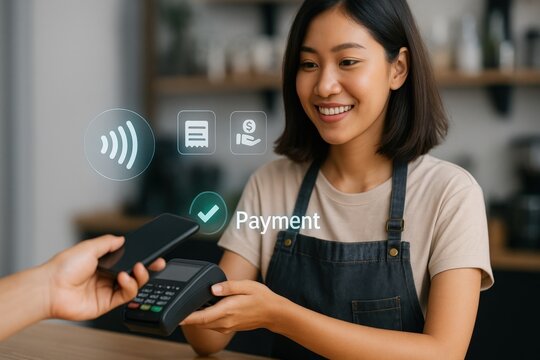 Contactless payment technology in modern cafe environment