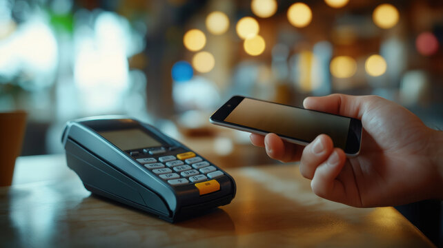 Contactless payment transaction at cozy cafe
