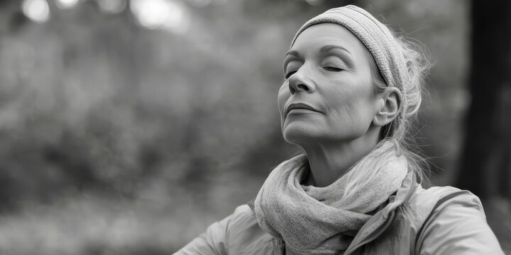 Contemplative woman in nature's serenity with sunny sky