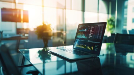 Close-Up Photo of Laptop Screen Displaying Vibrant KPI Dashboard with Reflective Surface of Pair Visible