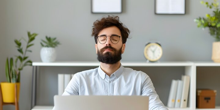 Businessman Working Ergonomically on Laptop in Minimalist Office Space with Copy Space