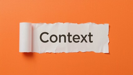 Bright orange backdrop highlights the word context on torn paper, leaving ample space for writing.