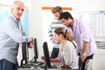 Manager and his team working at computers