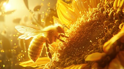 Honeybee Covered in Pollen Collecting Nectar from Flower