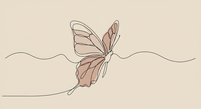 A single continuous line drawing of a butterfly, showcasing delicate wings and a simple, elegant design.