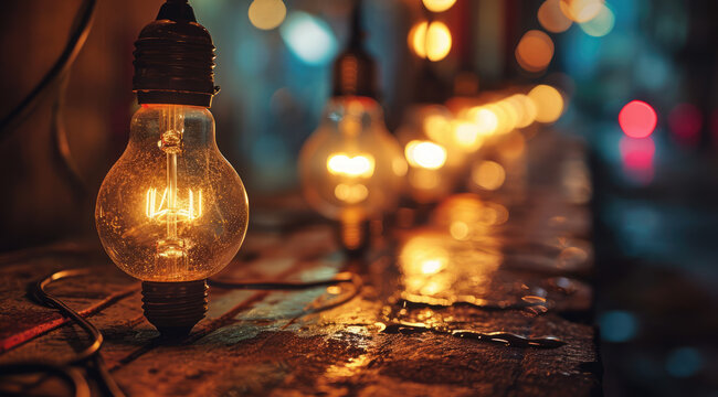 A warm, ambient row of vintage bulbs glowing in the dark.