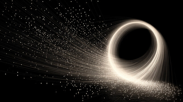 Circular streams of light spiral in glowing motion, creating a dynamic, futuristic effect, symbolizing energy, flow, connectivity, and motion in a visually striking scene.