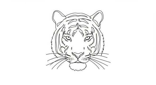 Striking minimalist line art of a tiger's face conveying strength and simplicity