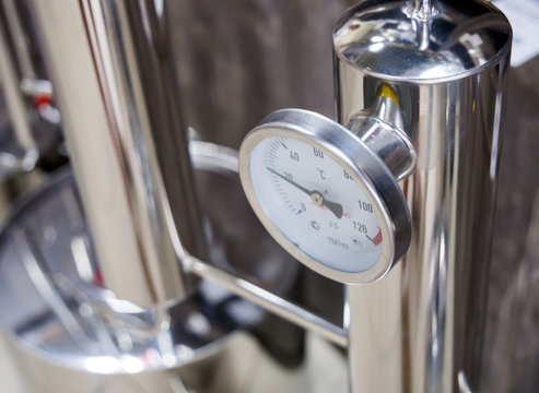 the industrial equipment used in brandy production, highlighting the intricate processes and machinery involved
