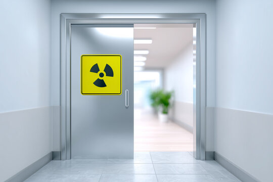 Deserted mental institution corridor with medical equipment and bed