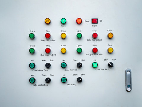 Various electric power control push button switch and status lamp select on off emergency switch and other for industrial machine install on cabinet