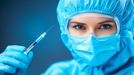 Sterile vaccine facility, robotic arms filling vials, glowing lab lights, meticulous safety checks