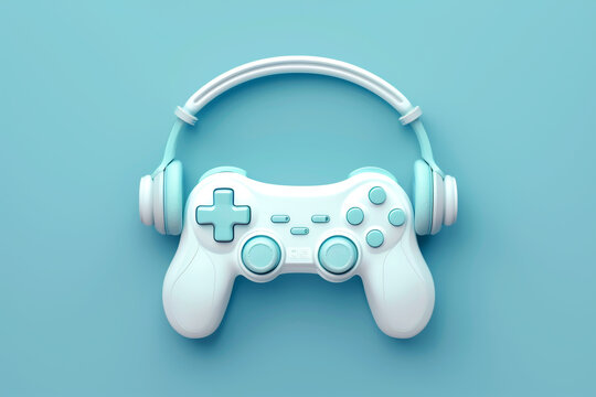 3d game controller and headphones icon floating on sky color background