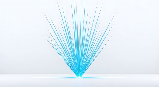 Abstract blue light beams radiating from a central point on a white surface in a bright setting