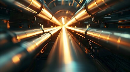Radiant light beams in futuristic virtual tunnel
