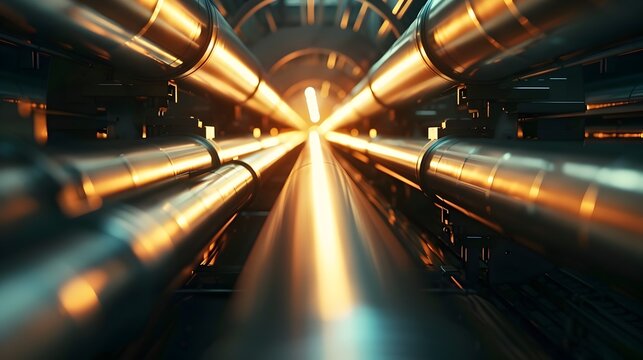 Glowing Metallic Tunnel of Convergent Lights and Shapes in Futuristic Abstract Architecture
