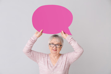 Pink blank cut out paper cardboard speech bubble of elliptical round shape with copy space for text on transparent or white background