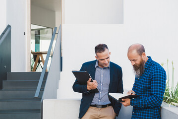 Serious contemplation between diverse colleagues