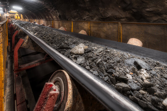 Conveyor belt moving crushed aluminum cans in recycling facility