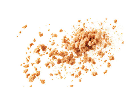 Pile cake crumbs, cookie flying isolated on white, clipping path