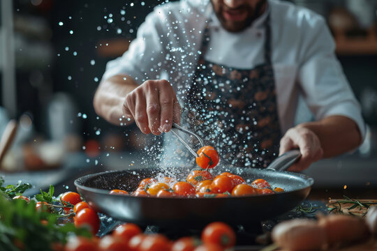 A stop-motion cooking tutorial, presenting a recipe in a fun and engaging way. Concept of culinary art and creativity. Generative Ai.
