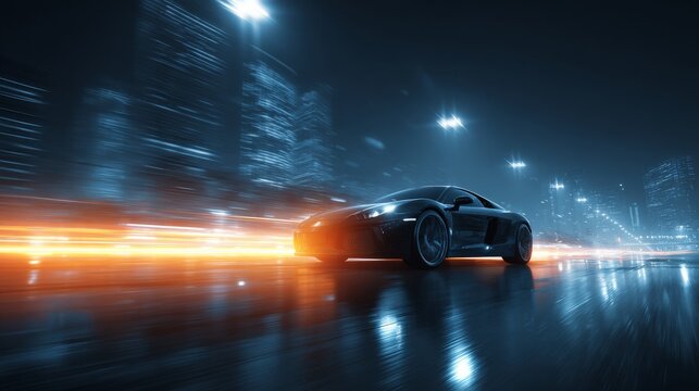 A sleek, futuristic car sits in a pink-lit, futuristic setting. The car's sleek lines and glowing taillights create a sense of speed and excitement.