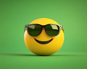 A cool sunglasses emoji exuding confidence against a vibrant green background