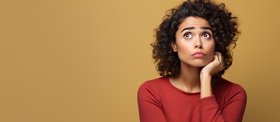young handosme man feeling happy, proud and hopeful, wondering or thinking, looking up to copy space with crossed arms against flat color wall