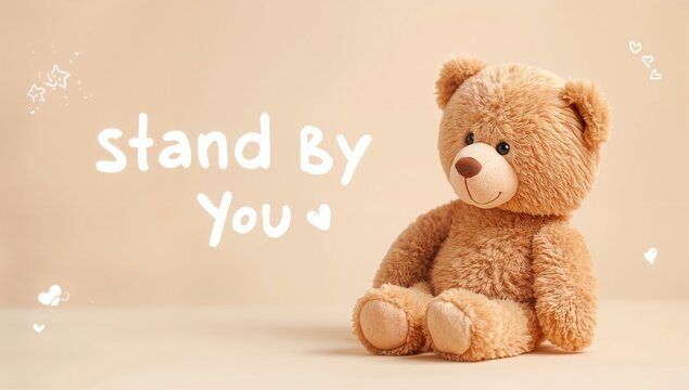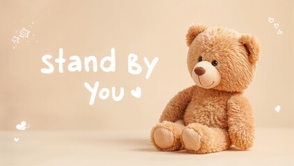 A plush bear toy resting in a leaning position, signaling reassurance and care, for World Support Day