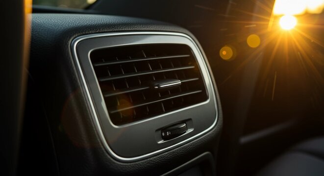 Car rear air vent with sun flare, automotive interior comfort, cooling system detail, passenger climate control, and vehicle cabin amenities.