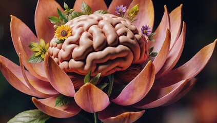 Brain blooming as a colorful flower symbolizing emotional growth and mental wellness